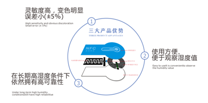 深圳聯合智能卡有限公司自主研發的濕度測(cè)量标簽又稱RFID濕度卡、防潮标簽,以無源NFC爲基礎的、用來監控物品相對濕度狀況的電子标簽。将标簽粘貼在需檢測(cè)的物品表面或放置在産品或包裝内,即可實時監控濕度變(biàn)化。