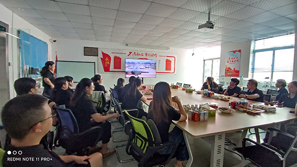 直播開始前,公司提前布置瞭(le)溫馨的觀看場地 ,精心準備瞭(le)水果、堅果、糕點等零食,讓員工在輕松的氛圍中感受莊嚴時刻。随著(zhe)閱兵儀式正式開啓,整齊劃一的徒步方隊、威武雄壯的裝備方隊、氣勢磅礴的空中梯隊依次亮相,屏幕裏每一個震撼畫面、每一段铿锵步伐,都讓在場員工心潮澎湃 。大家聚精會神,目光緊緊鎖定屏幕,不時爲祖國的強大實力而自豪,爲革命先烈的犧牲奉獻而動容。