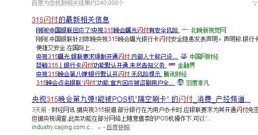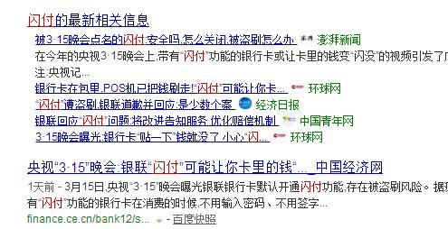 2019年3月15日“國際消費者權益日”,央視315晚會上曝光“銀行卡的閃付功能存在被盜刷的風險,然而銀行卻無法徹底關閉該服務”。根據相關報小編瞭(le)解到新辦(bàn)理的銀行卡卡面有水波紋圖樣,銀行工作人員解釋,這種水波紋是閃付功能的标識。具備閃付功能的銀行卡,而且都是被默認開通瞭(le)閃付功能,單筆免密金額1000元以内,每日累計刷卡消費額度600元到5000元不等在消費時,不需輸入密碼,也不需持卡人簽字,隻需要将卡片靠近POS機就能快速完成交易。
