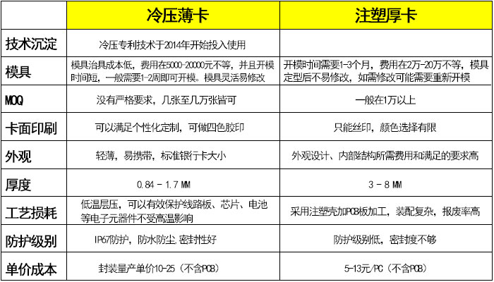 冷壓薄卡與注塑厚卡對比