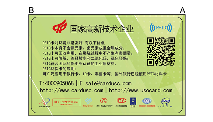 • PETG環保卡可回收利用,耐火性佳,在燃燒過程中不産生有害煙霧;