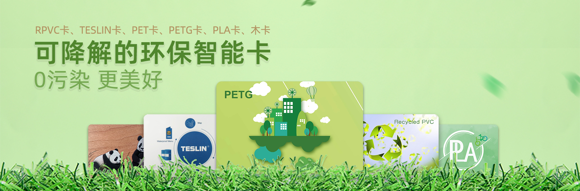 PETG環保卡主要應用於歐洲,但在北美、亞洲也得到瞭越來越多的應用。原因是具有很寬的加工範圍,高的機械強度和優異的柔性,比起PVC透明度高,光澤好,容易印刷並且具有環保優勢。