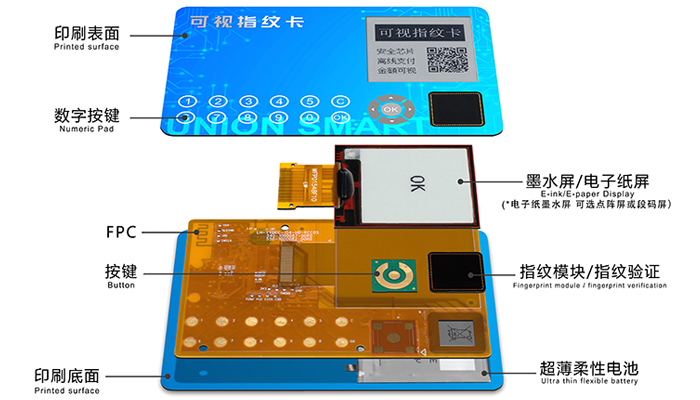 數字貨币系列智能卡産(chǎn)品是採(cǎi)用本司發明專利(專利号201610452484.2)“冷壓工藝”制作而成的智能卡。産(chǎn)品内置高性能SE安全芯片(安全芯片客戶可以自己選擇定制),可以按客戶需求,集成藍牙模塊、指紋模塊、非接讀寫模塊、12個觸摸按鍵、電池以及電子墨水屏,封裝成有源數字貨币智能卡。